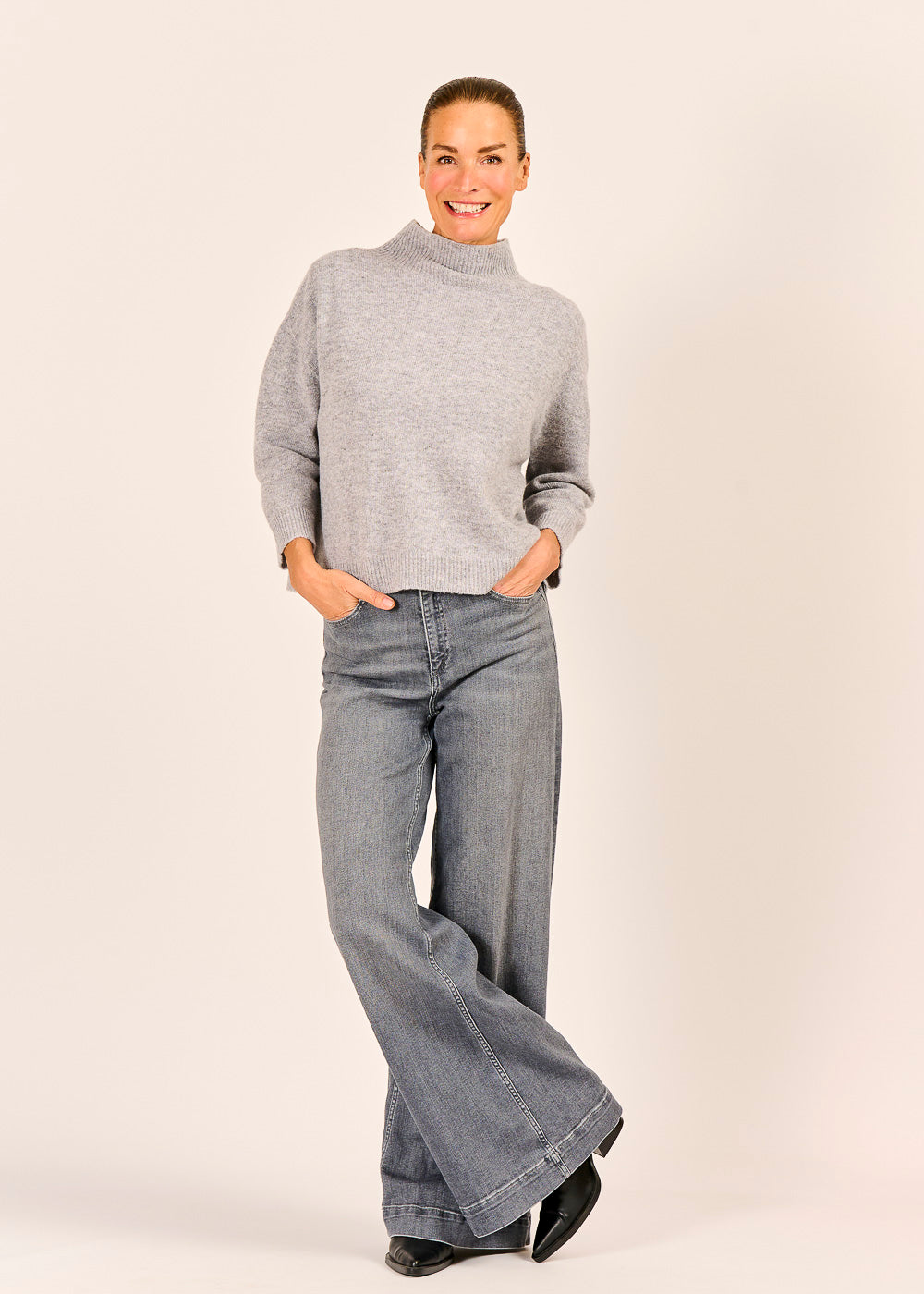 Diese moderne Marlene Jeans in edlem Grau interpretiert den Retro-Trend mit einem zeitgemäßen, weiten Schnitt neu. Der hohe Bund und die fließende, weite Passform sorgen für eine optisch streckende Silhouette und höchsten Tragekomfort. Kombinieren Sie das Denim-Statement mit figurbetonten Oberteilen oder Strick für einen lässigen und zugleich eleganten Look.