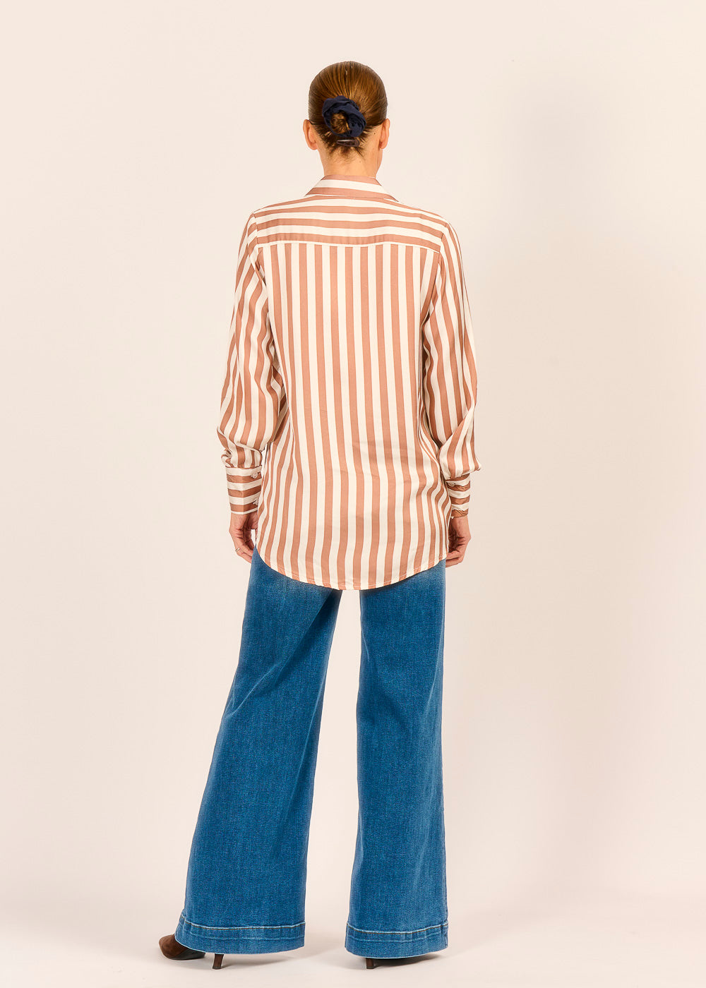Feinste, fließende Viskose bildet die Basis für diese edle Streifenbluse und sorgt für einen eleganten Fall sowie ein luxuriöses Tragegefühl auf der Haut. Das Design überzeugt durch stilvolle Details wie die breiten Streifen, die saubere verdeckte Knopfleiste, den kleinen Kragen und die besonders hohen Manschetten an den Ärmeln. Mit diesem zeitlosen Key-Piece gelingt Ihnen mühelos ein professioneller und gleichzeitig modischer Look, der in keinem Kleiderschrank fehlen sollte.