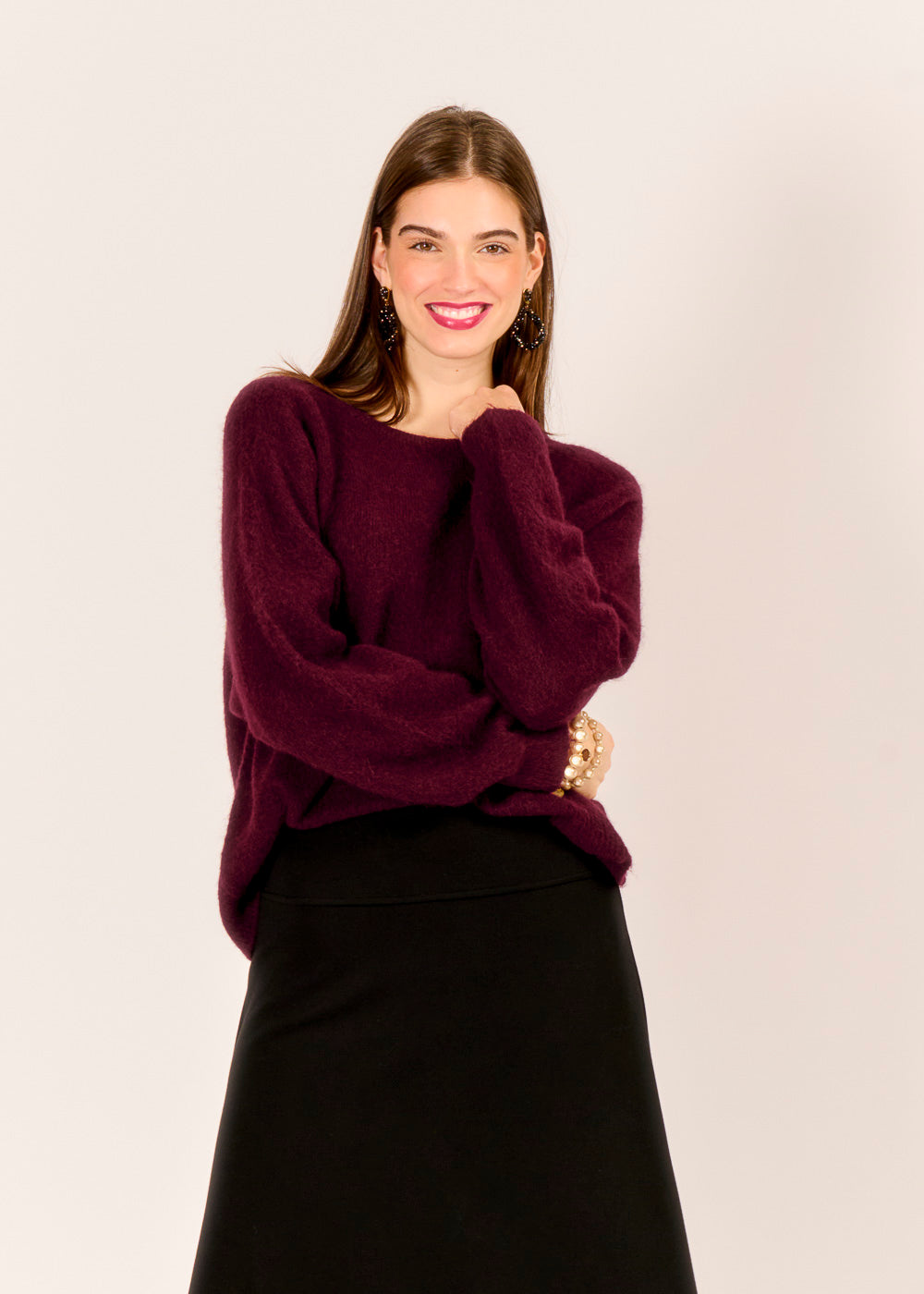 Dieser weiche, anschmiegsame Strickpullover umhüllt dich. Der Vino-Ton verleiht deinem Look eine warme, moderne Ausstrahlung. Ob lässig im Alltag, elegant für besondere Anlässe oder mit der passenden Hose als monochromer Look gestylt – die Kombinationsmöglichkeiten sind endlos.