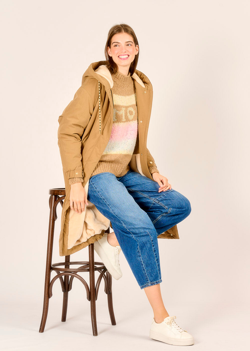 Ein echter Allrounder für die Übergangszeit: der Longparka von Como No. 1 in dezentem Beige. Das lange, knieumspielende Design und das wasserabweisende Obermaterial schützen dich zuverlässig vor Wind und Wetter. Für kuschelige Wärme sorgt die Kapuze mit weichem Teddystoff-Futter. Dank des Zwei-Wege-Reißverschlusses und den praktischen Eingrifftaschen ist dieser Parka der perfekte Begleiter für jeden Tag.