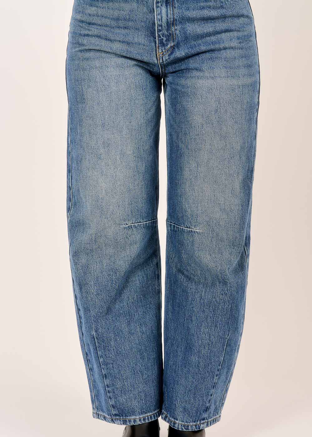 Die lässige Ballon Jeans sorgt nicht nur eine moderne Silhouette, sondern schenkt dir Bewegungsfreiheit. Der klassische Blauton lässt sich mühelos zu allen deinen Lieblingsstücken kombinieren.